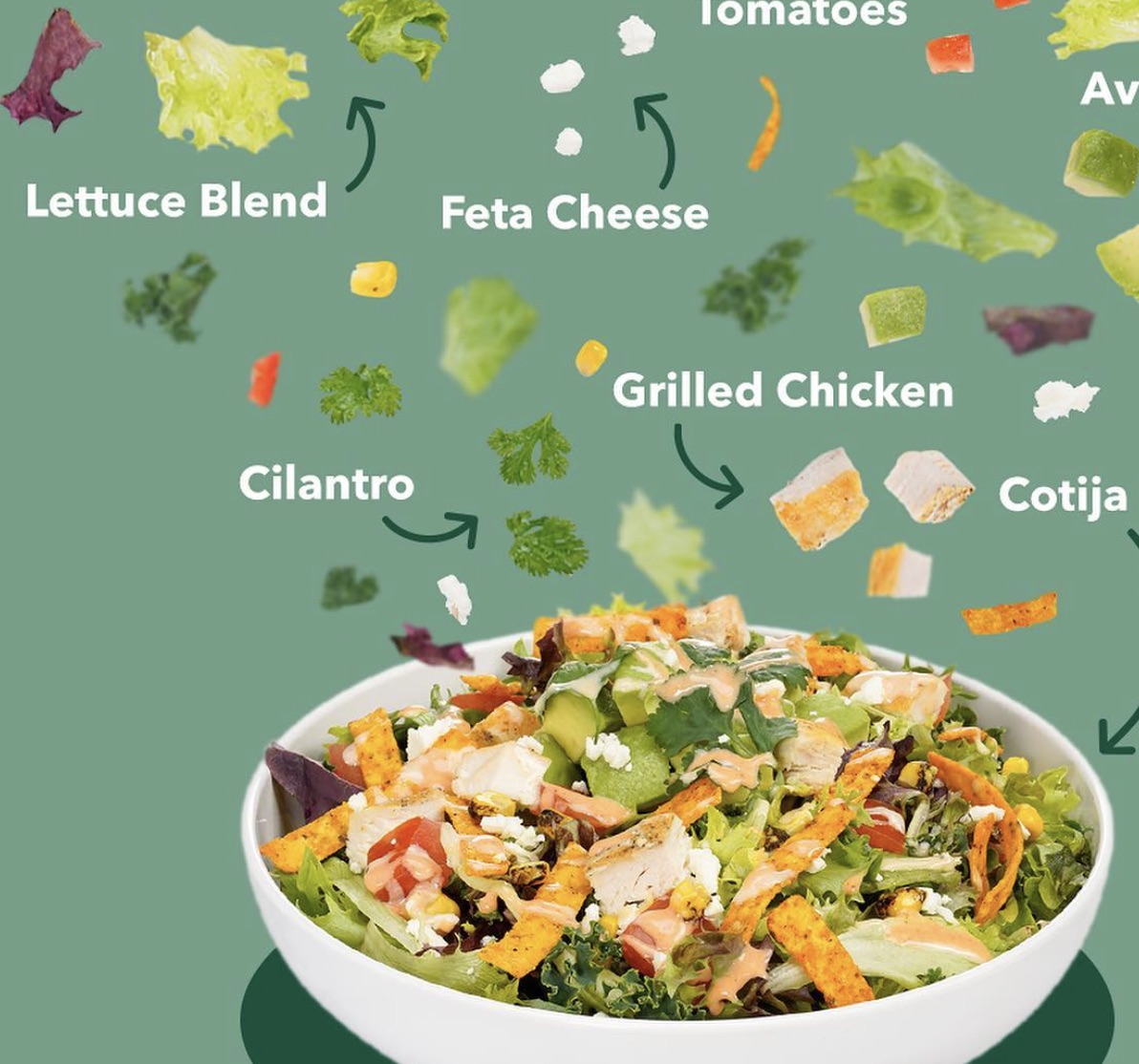 | Green Goddess Chicken Cobb Salad | $10.50 – $12.50 |